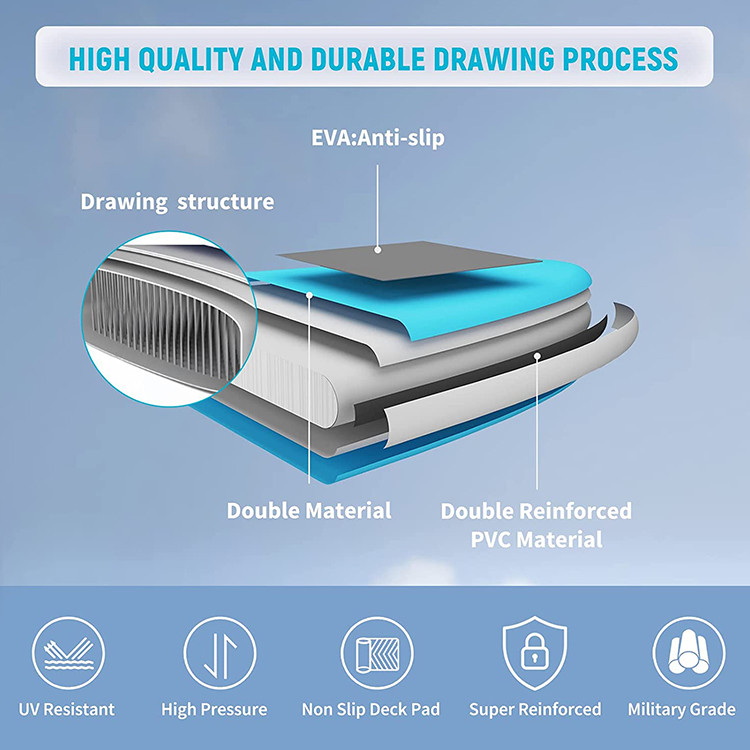- [하이-퀄이티와 오래가는 입지가 부판을 올립니다] 이 부판은 좋은 쿠셔닝과 새로운 환경적으로 우호적 에바 물질, 임팩트 저항과 내수성을 채택합니다. 다층 바느질 계통 구조와 물방울 편조직 구조를 최적화한 후, 공기 서프보드는 당신이 미끄러지는 것을 예방하기 위해 좋은 마찰을 가지고 있습니다.