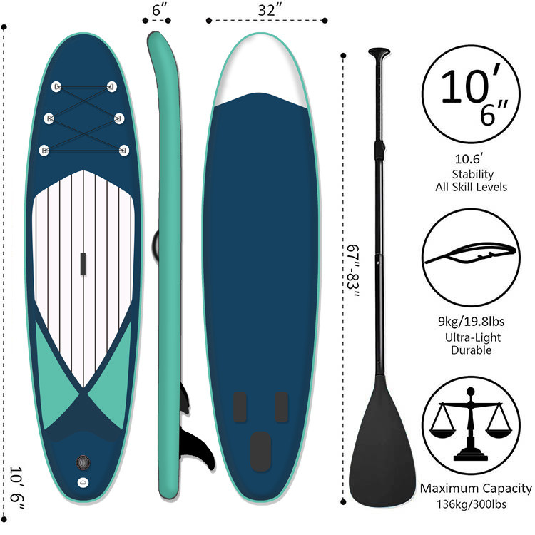 - [EXCELLENT 조작성] 후아루이 부판이 있습니다 롱 32 넓인 10'6이 6 " 두꺼운, 중량 18 파운드입니다. 분리할 수 있는 바닥 팔은 안정성과 균형을 강화하고 속도와 취급을 향상시킵니다, 부풀게할 수 있는 부판이 라이더의 균형을 향상시키기 위해 부드러운 쿠션, 논슬립 수축 패드에 의해서 덮힙니다